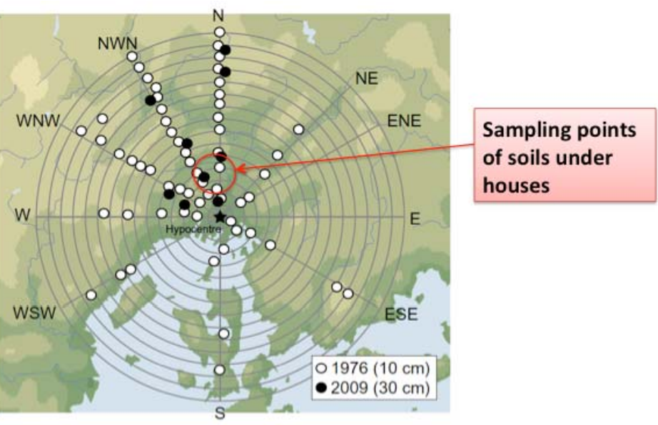 1976 年と 1978 年の調査では、はじめて 30km 圏で系統的な土壌調査を行われた。残念ながら、このときまでに大気中核実験が多数行われていたため、グローバルフォールアウトの影響が大きく有意な差は見いだせなかった。
